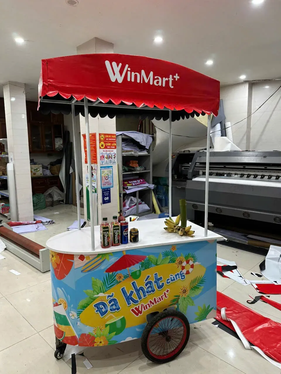Xe đẩy bán hàng tự động được thiết kế với kết cấu gọn gàng, dễ di chuyển, phù hợp với mọi không gian kinh doanh: vỉa hè, hội chợ, công viên, cổng trường, khu dân cư…