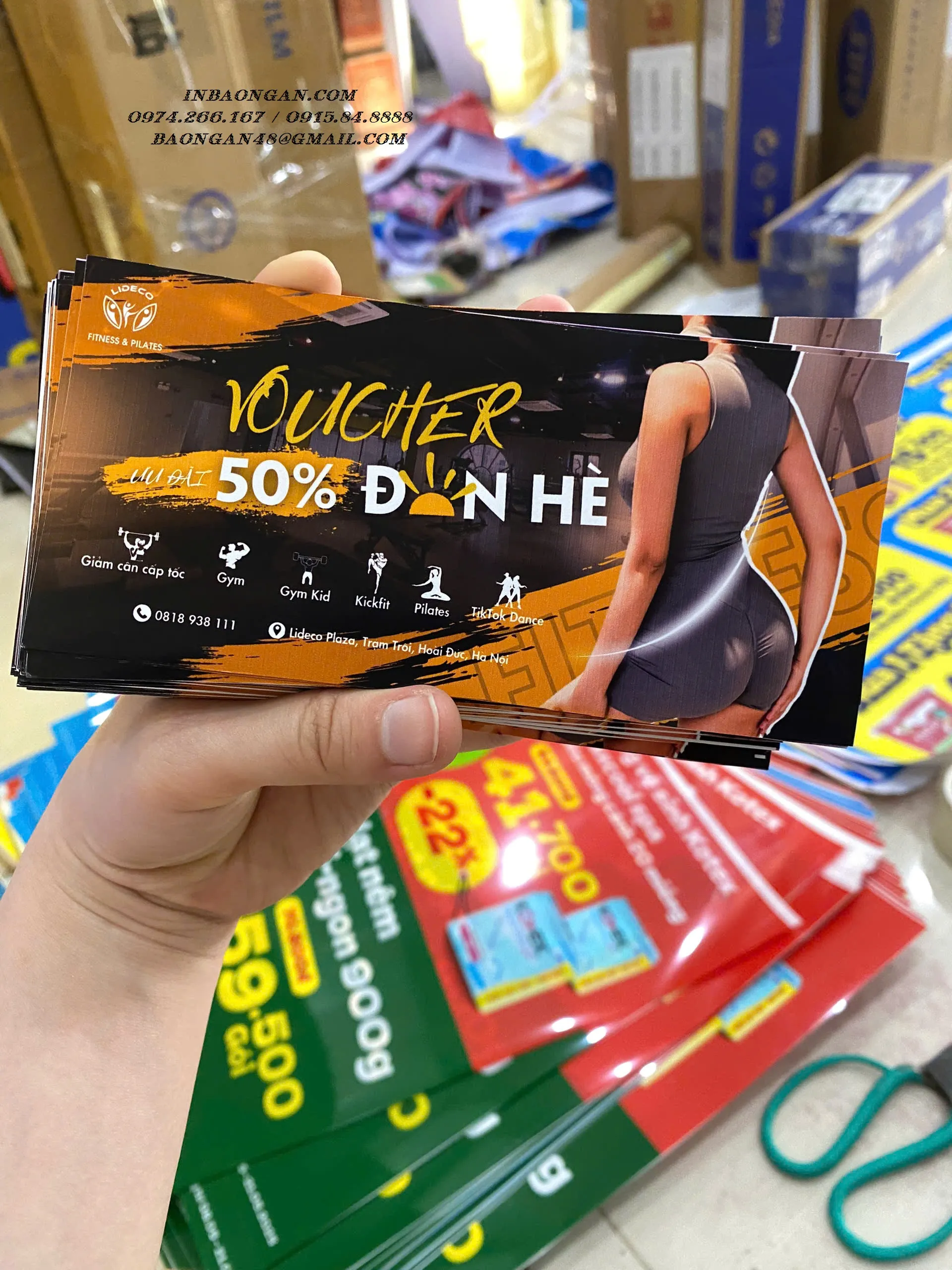 - Kích thước in voucher: Kích thước thường dùng là 5,5x18cm, hoặc 9x15cm bạn cũng có thể chọn kích thước khác phù hợp với nội dung và mục đích sử dụng.