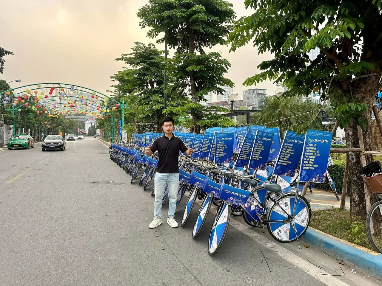 Xe đạp được trang trí bằng decal, cờ phướn, banner, hình ảnh sản phẩm, logo thương hiệu, thông điệp quảng cáo, v.v.